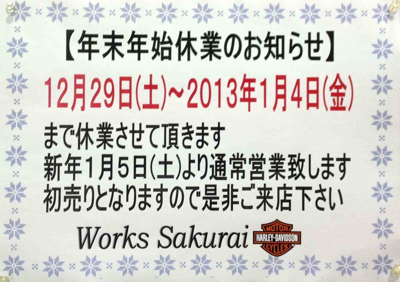 年始は2013年1月5日(土)からの営業となりまして